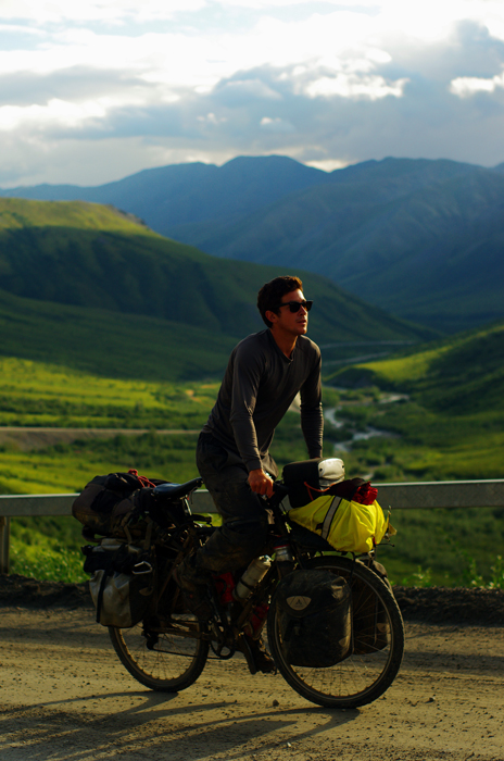Siphay entame l’effort pour surmonter Atigun Pass, le dernier col à gravir en Amérique avant de descendre dans la toundra du versant Nord.