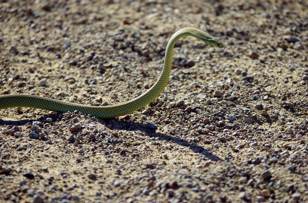 Voilà pourquoi il faut faire attention où l’on met ses pieds et ses roues de vélo ! Nous avons eu du mal à déterminer l’espèce de celui-ci. Il pourrait s’agir d’un Wester Brown Snake, le serpent le plus meurtrier d’Australie. Mais il est assez difficile à identifier exactement, ce pourrait aussi être soit un Inland Taipan, le serpent le plus venimeux du monde ! Dans tous les cas, mieux vaut faire attention…