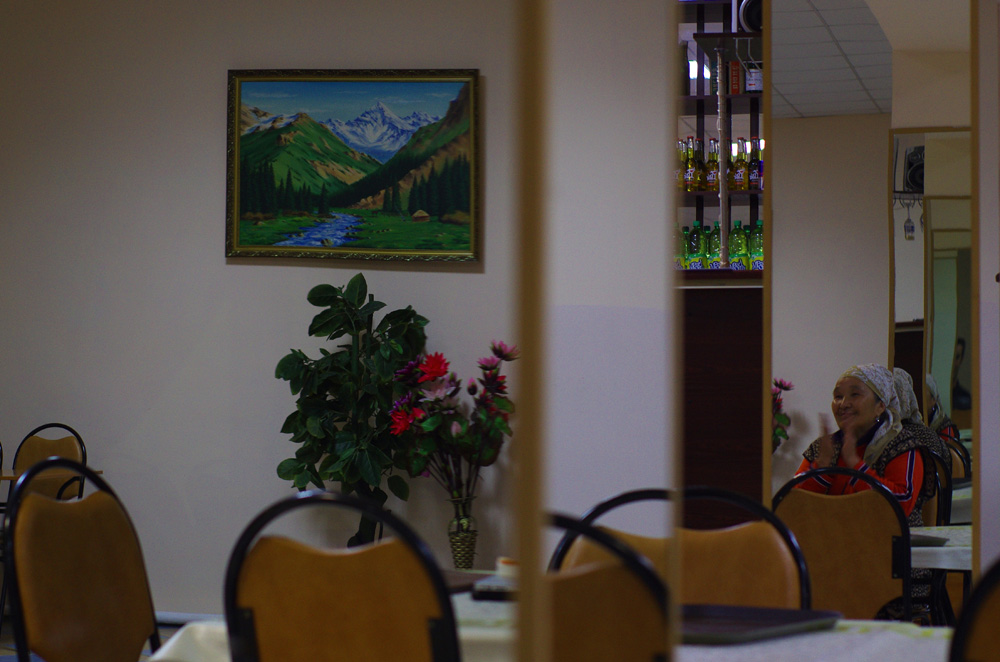 Nous sommes quasiment les seuls clients ce soir là à manger dans ce petit restaurant. Ici la mère applaudit sa fille en train de chanter un karaoké. Nous finirons notre soirée à boire de la vodka à la santé de la propriétaire de cette cantine qui fête son anniversaire et a bien l’intention de marquer le coup. Enfermés à clé dans la salle avec la propriétaire et la cuisinière nous trinquons, rigolons, tentons de leur apprendre quelques mots de français et finissons la nuit allongés sur les chaises du restaurant. Au Kazakhstan : quand l’homme n’est pas là, les femmes dansent .