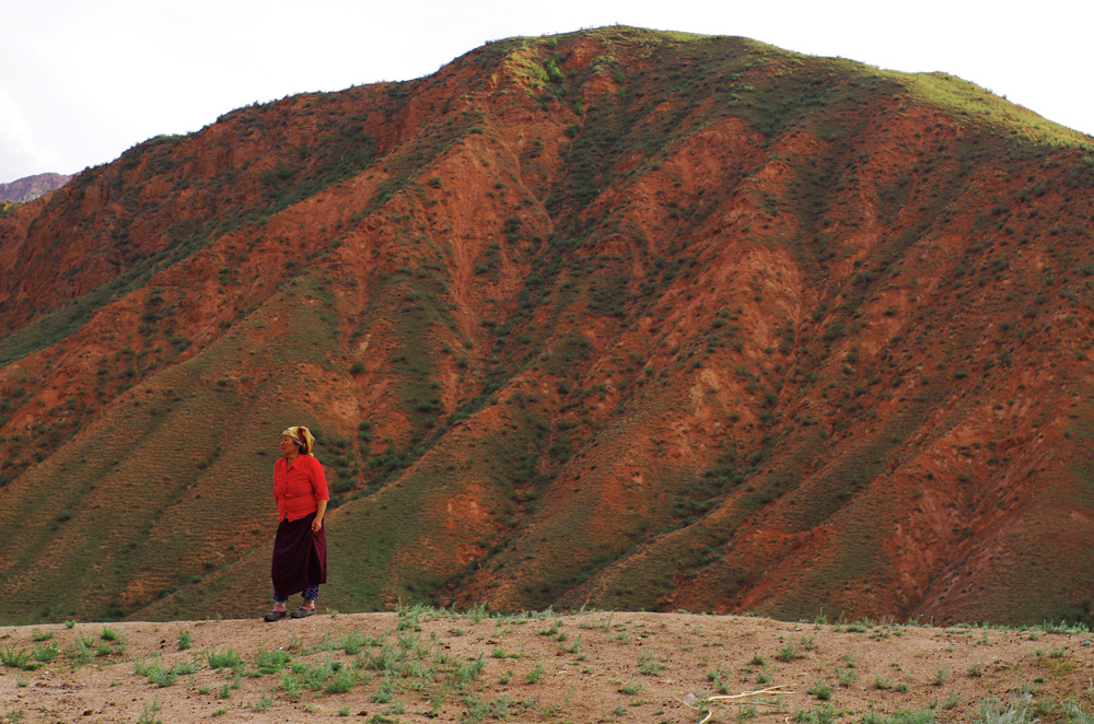 Nous cherchons notre chemin et tentons de comprendre par quelle montagne, quel col, quelle piste nous devons passer. Cette dame apparait au milieu de nulle part et nous en profitons pour lui demander quelques informations et nous rassurer de notre avancée à l’estime mais, en kirghize, cela reste difficile ! Une bonne rigolade aussi parfois.
