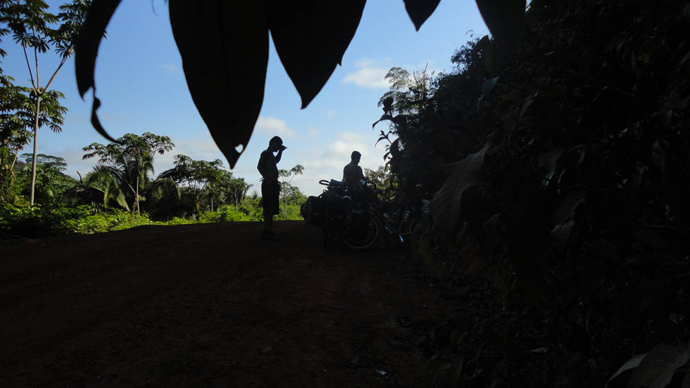 Une bonne pause à l’ombre pour vider notre stock de biscuits et entamer nos litres d’eau. A cause du climat humide, nous buvions environ 10L d’eau par jour par personne ! Soit, à trois, une tonne d’eau en un mois passé dans la jungle.