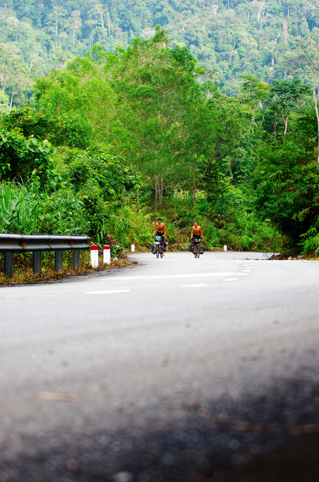 La route Hô Chi Minh nous donne du fil à retordre. Cela faisait bien longtemps que nous n’avions pas évolué en montagne (depuis l’Alaska). Mais la grimpette se passe bien sur cette route assez peu empruntée par le gros trafic. Nous roulons côte à côte et discutons comme nous aimons le faire, malgré l’effort à fournir.